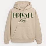 La stampa in vinile a caldo mette in risalto il lettering raffinato “Private Life” in verde intenso, creando un contrasto elegante con la base beige. Un capo versatile, ideale per look casual-chic ma sempre distintivi.