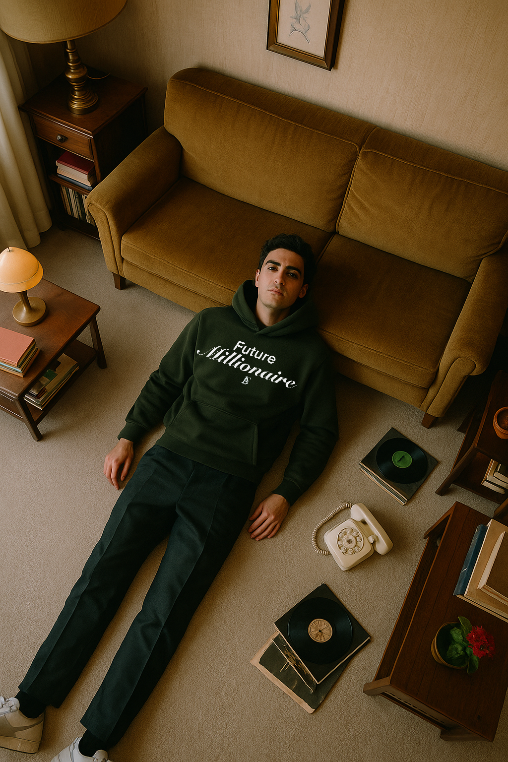 La felpa Future Millionaire è un simbolo di ambizione e stile senza tempo. Realizzata in Italia con tessuto garzato di alta qualità (70% cotone, 30% poliestere), unisce comfort e resistenza, garantendo una vestibilità premium.